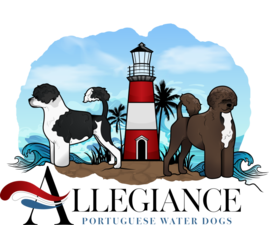 In 2005, Amy purchased our first Portuguese Water Dog from Peggy Helming and Milan Lint of Pouch Cove PWDs. During one of her visits, there happened to be a gorgeous litter on the ground — all spoken for, of course — but Amy spent days playing with them, cuddling them, and dreaming of the day one would come home with us. A few months later, Peggy called to say another litter had arrived, and there was a wonderful girl in it for our family. That is how Pouch Cove’s Stay Tuned — “Sony” came to Allegiance.